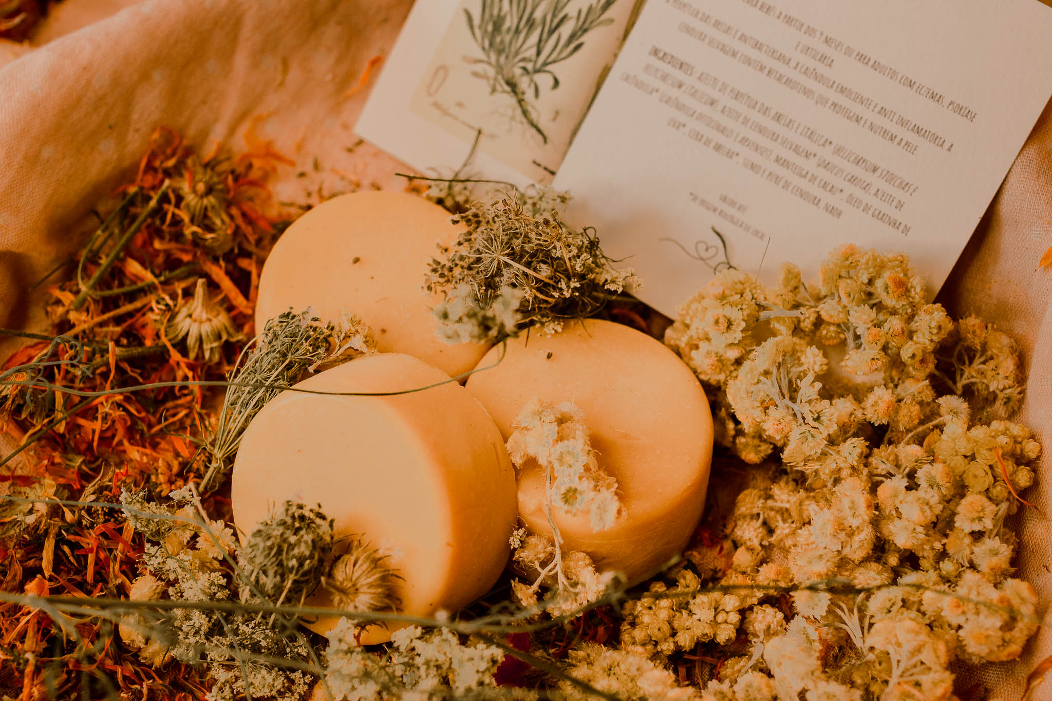 Ingredientes: azeite de perpétua das areias (Helichrysum stoechas) e perpétua itálica (Helichrysum italicum), azeite de cenoura selvagem (Daucus carota), azeite de calêndula (Calendula officinalis), banha de porco, óleo de grainha de uva, cera de abelha, sumo e puré de cenoura, NAOH