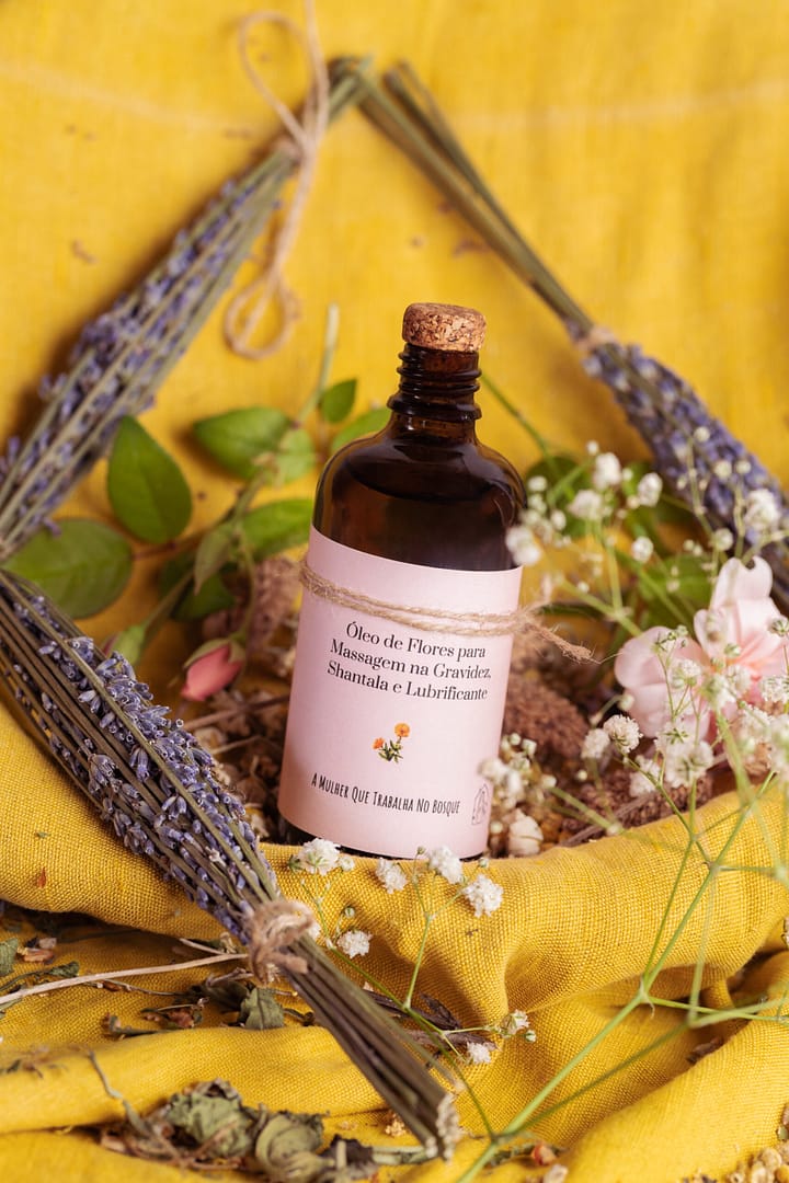 Este é um óleo muito rico e floral, feito numa maceração lenta de flores, junto com o azeite e a banha. É óptimo para massajar a barriga durante a gravidez, no pós parto e para o bebé depois do banho ou na massagem shantala. Também pode ser usado como um óleo corporal normal, numa massagem relaxante. Aquecer previamente em banho maria (sem a tampa) antes de aplicar para derreter e surtir melhor o efeito hidratante e relaxante.