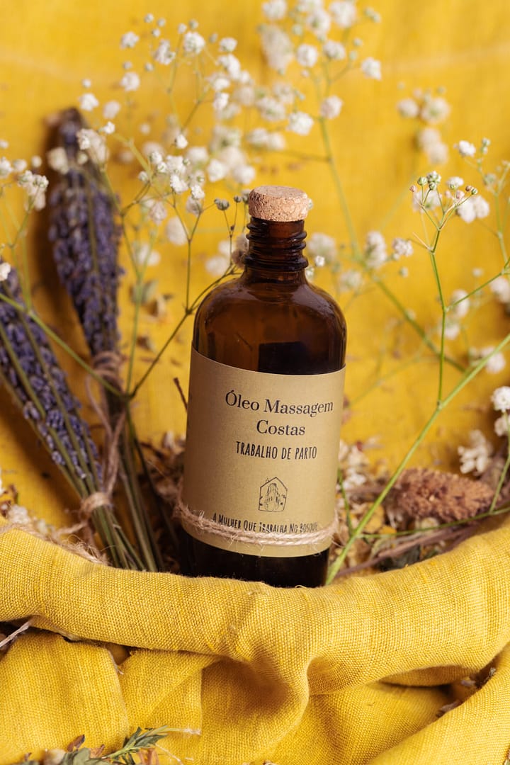 Este é um óleo para aplicar no fundo das costas (zona lombar) apenas durante o trabalho de parto, quando a mulher sente muita pressão nessa zona. Este óleo aplicado em massagens circulares no fundo das costas ajuda a aliviar a pressão.