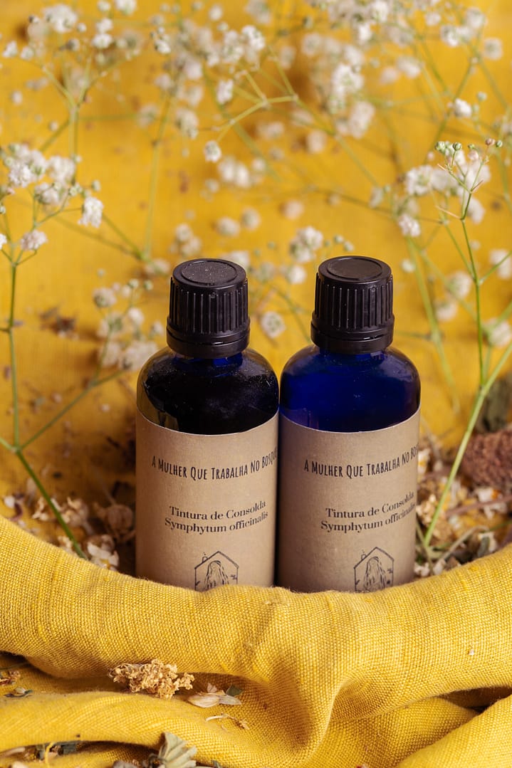 Esta tintura é APENAS PARA USO EXTERNO.  Serve para ajudar na cicatrização do períneo – combinada com a tintura de calêndula pode ajudar mais eficazmente na regeneração do períneo ou fissuras vaginais. Diluída em água serve para desinfectar feridas, aplicando num pedaço de algodão ou compressa. Aplicada numa massagem vigorosa  – combinada com pomada de consolda, alivia problemas nos ossos, rompimento de tecidos, músculos, tendões, fracturas ósseas, inflamação nas articulações. A consolda tem efeito analgésico, regenerador, cicatrizante, anti inflamatório e anti séptico.  É uma das tinturas a ter na caixa de primeiros socorros.