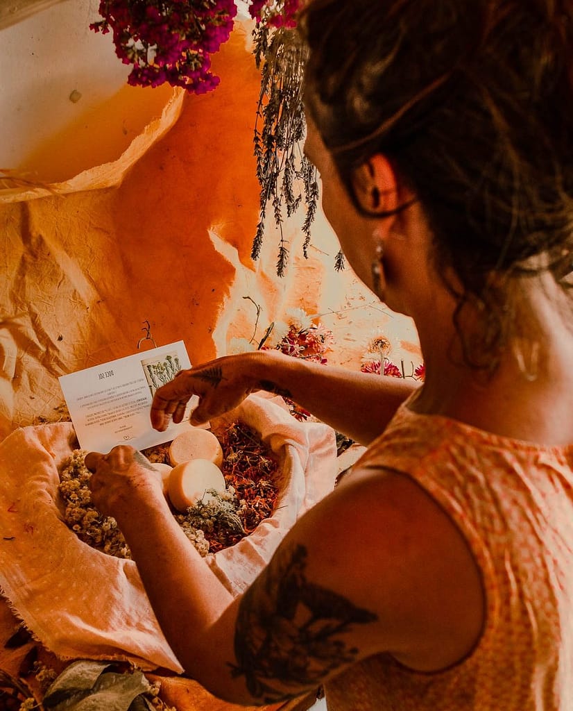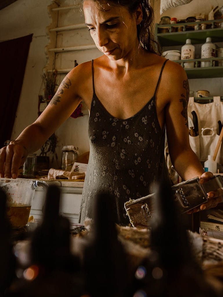 Colho plantas em modo silvestre ou cultivo-as eu mesma, e com a humildade e a reverência que me são permitidas, transformo essas mesmas plantas, em produtos de cosmética, beleza, em auto nutrição, enquanto ARTESÃ DE COSMÉTICA NATURAL E HERBALISTA.